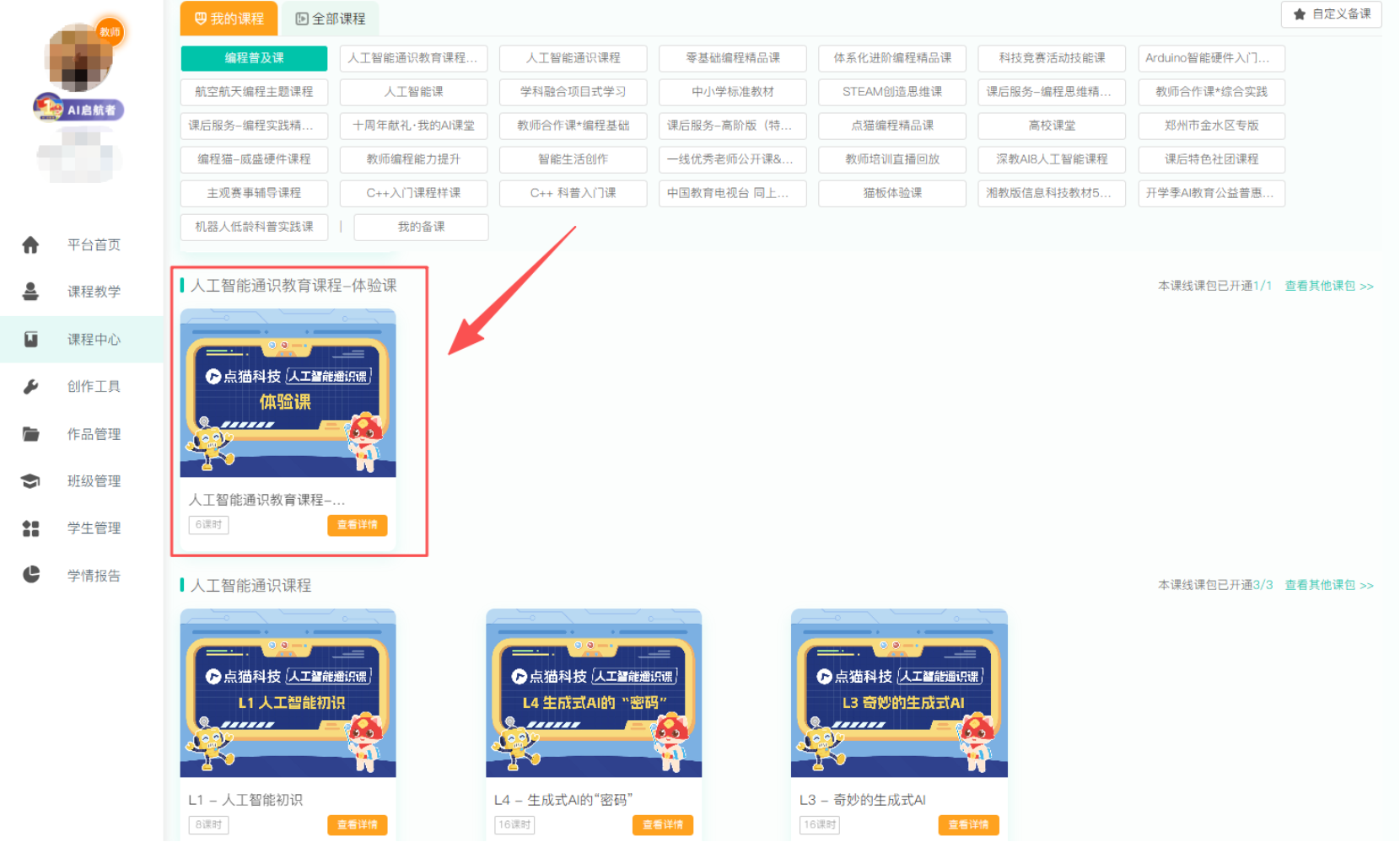 点猫科技人工智能通识教育课程基础课使用说明