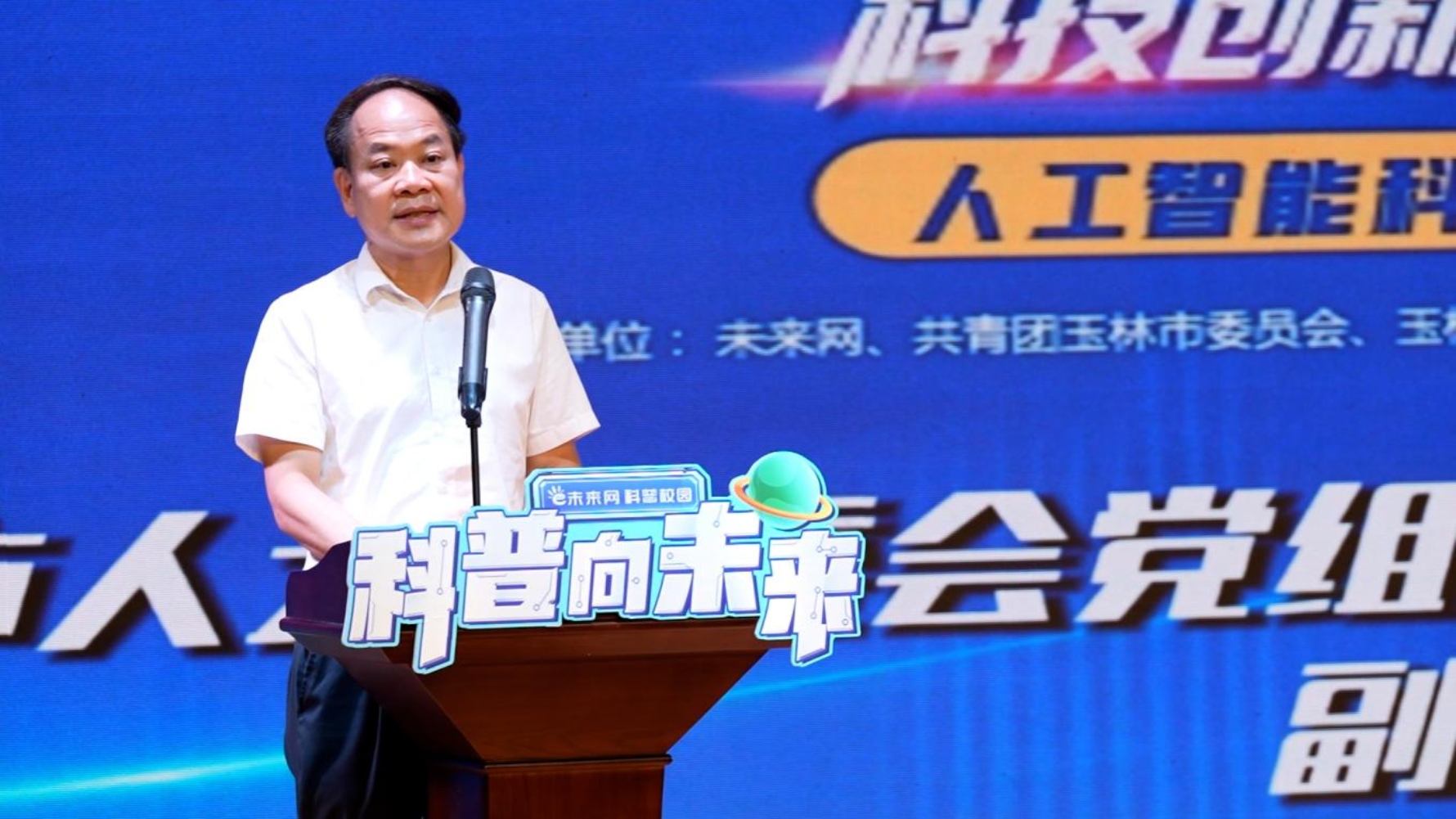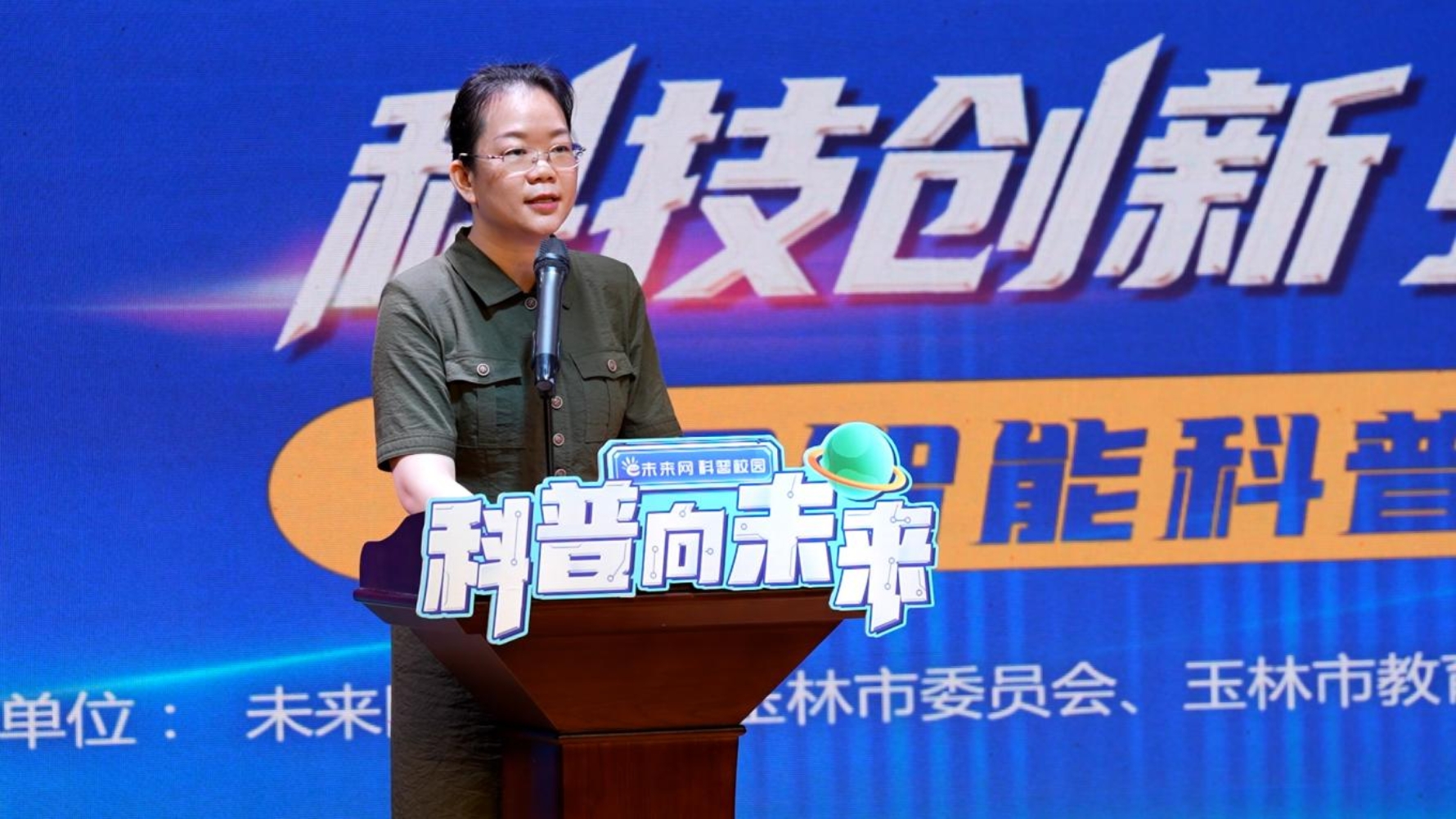 本次活动由未来网、共青团玉林市委、玉林市教育局联合主办,旨在深入学习贯彻习近平总书记致第九次全国少代会重要贺信精神,在青少年中大力弘扬科学精神。北京交通大学博士生导师、教授、移动专用网络国家工程研究中心主任张宏科,中国少年儿童新闻出版总社党委常委、副总编辑蔺玉红,玉林市人大常委会党组成员、副主任钟永东,共青团玉林市委书记林夏、副书记梁冬英,玉林市教育局党组成员、副局长梁兴波,未来网副总裁管真真等出席活动。活动由林夏主持,玉林市优秀中小学师生代表和玉林市广西北部湾人工智能教育大赛的参赛学生们现场参加了活动。