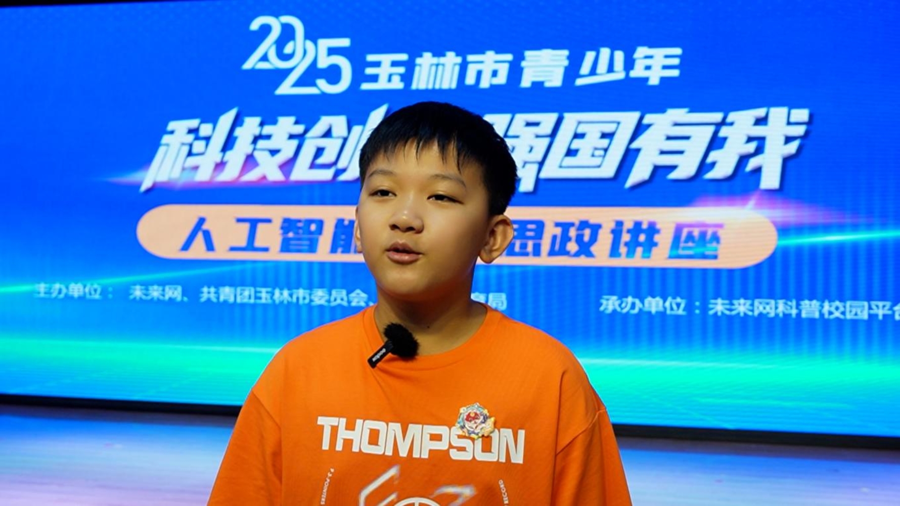 玉林市第一中学高二18班的王振华说,“参与本次人工智能讲座让我真切感受到人工智能正以前所未有的深度重塑生活。我加入了学校的科技社团,在那里系统地学习了编程,并参与了赛事。我的成绩虽有波动,但这段经历如同磨刀石,让我的逻辑思维和解决问题的能力,愈发锋利。”王振华说最想利用AI做两件事:一是自动化编程助手,让高效的AI简化重复的劳动;二是BUG修改助手,让AI智慧帮助程序员从错误与实践中不断进步。