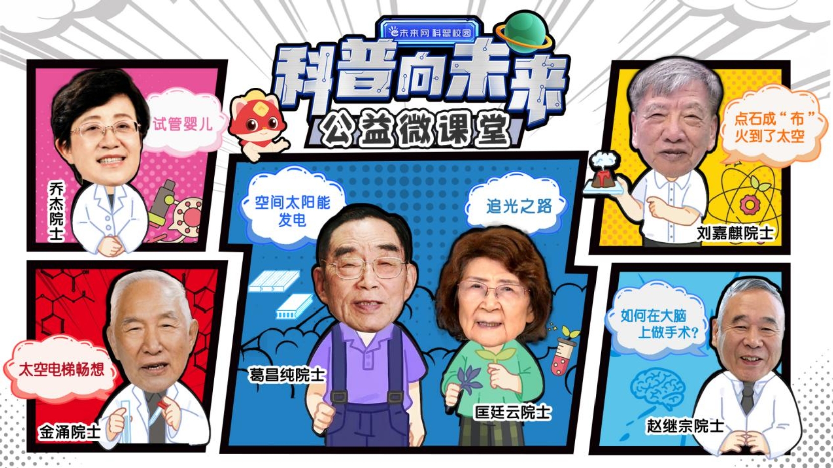 2024年,科普校园《公益微课堂》第一季上线,中国科学院院士葛昌纯、匡廷云、刘嘉麒、赵继宗,中国工程院院士金涌、乔杰等来自不同领域的多位院士受邀参加,用中小学生听得懂的语言和喜欢的表达方式,既深入浅出地讲述了他们研究领域的科学知识,又引导中小学生主动去解锁中国的硬核科技知识。