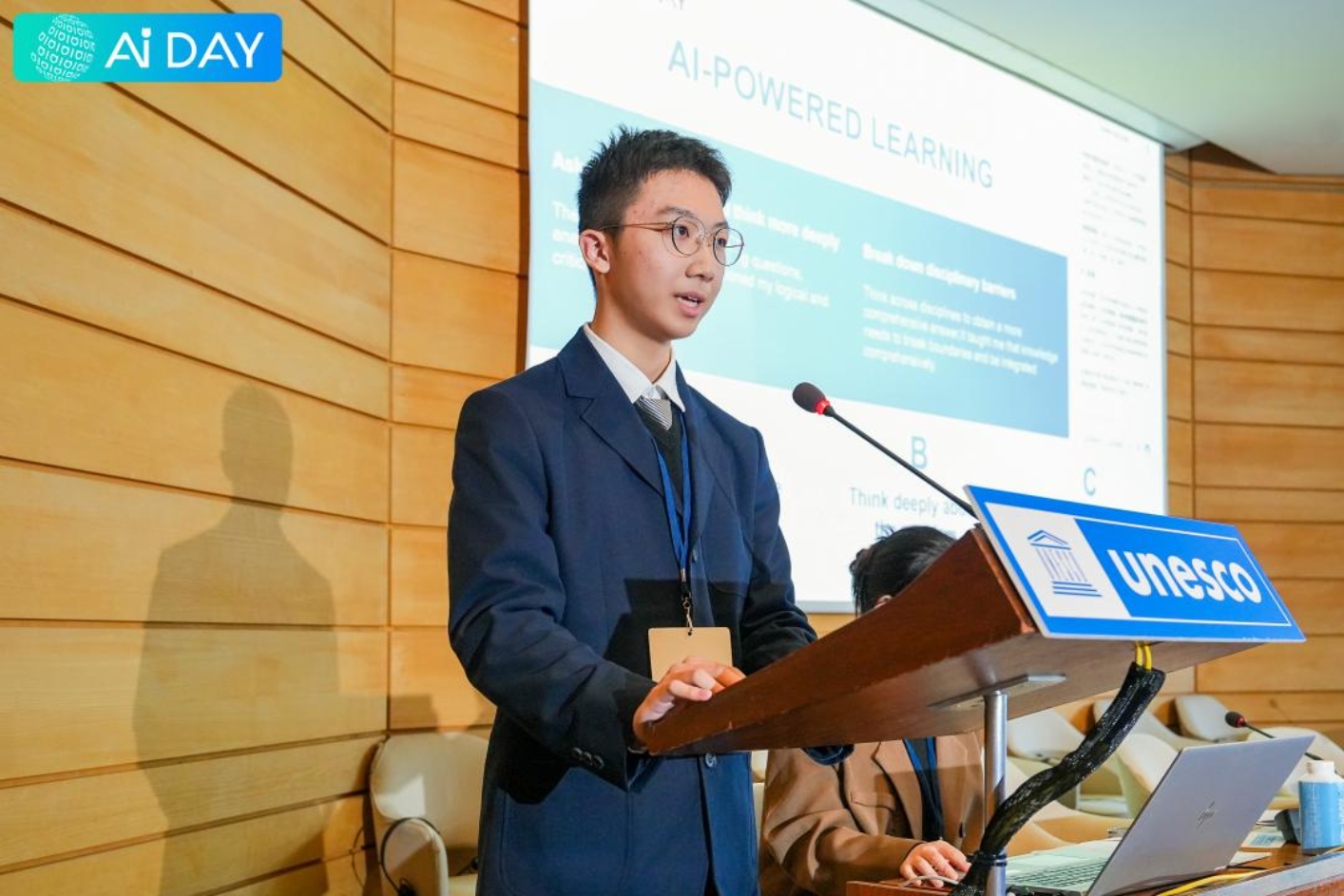 在3月26日举办的联合国教科文组织AI Day 2026人工智能教育国际高峰论坛上,联合国教科文组织官员、海外教师与学生代表等嘉宾齐聚一堂。点猫科技邀请了中国优秀的AI教育学生代表,并汇集了各地AI教育优秀案例,共同登上这一国际性舞台,分享中国AI教育的丰硕成果与优秀经验。